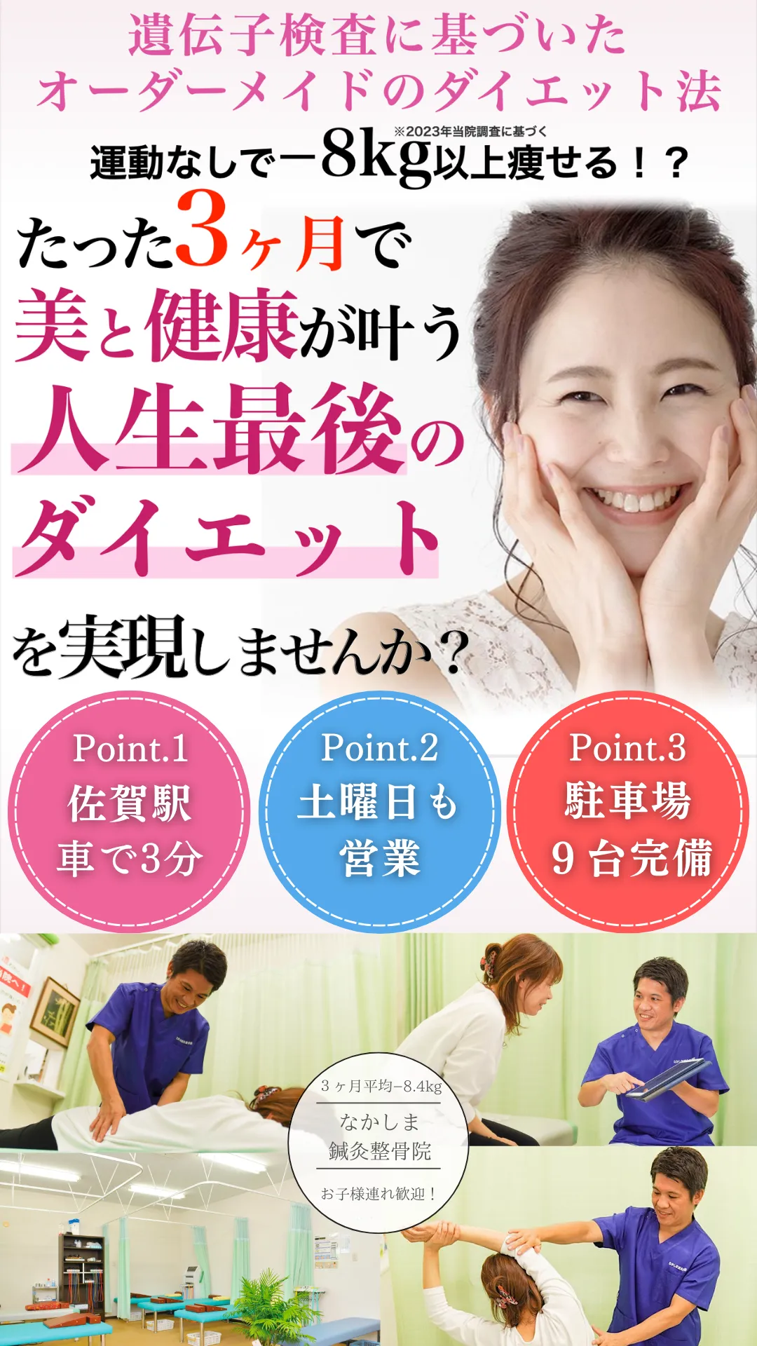 なかしま鍼灸整骨院では、あなたのダイエットを最初から最後まで責任を持って真摯に向き合い、結果にこだわっていきます。